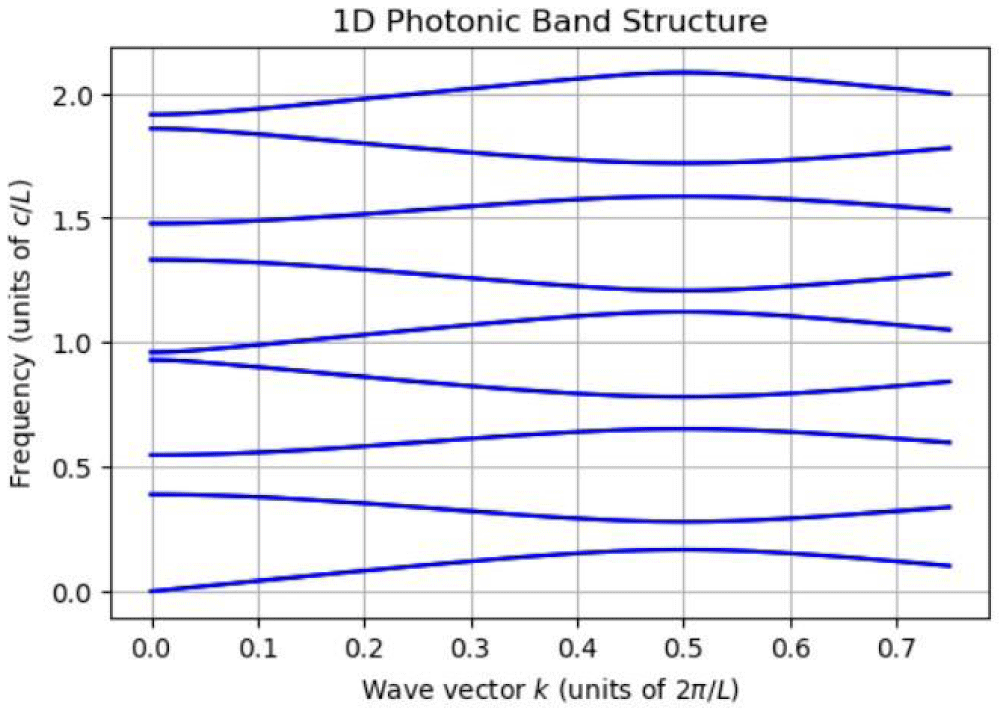 The computed photonic band structure for the 1D periodic structure is shown in Figure 1. The simulation results reveal the relationship between the wave vector k (in units of ( ).