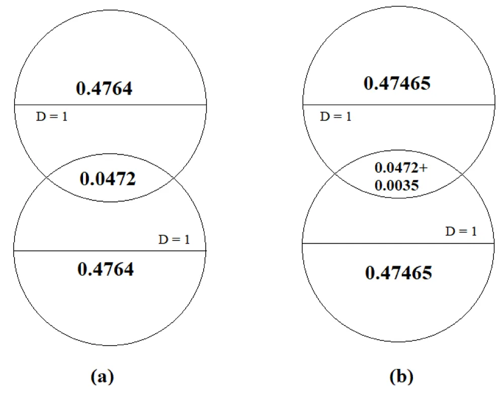 DM = 1/π - 1/2π2 = (2π - 1)/2π2
