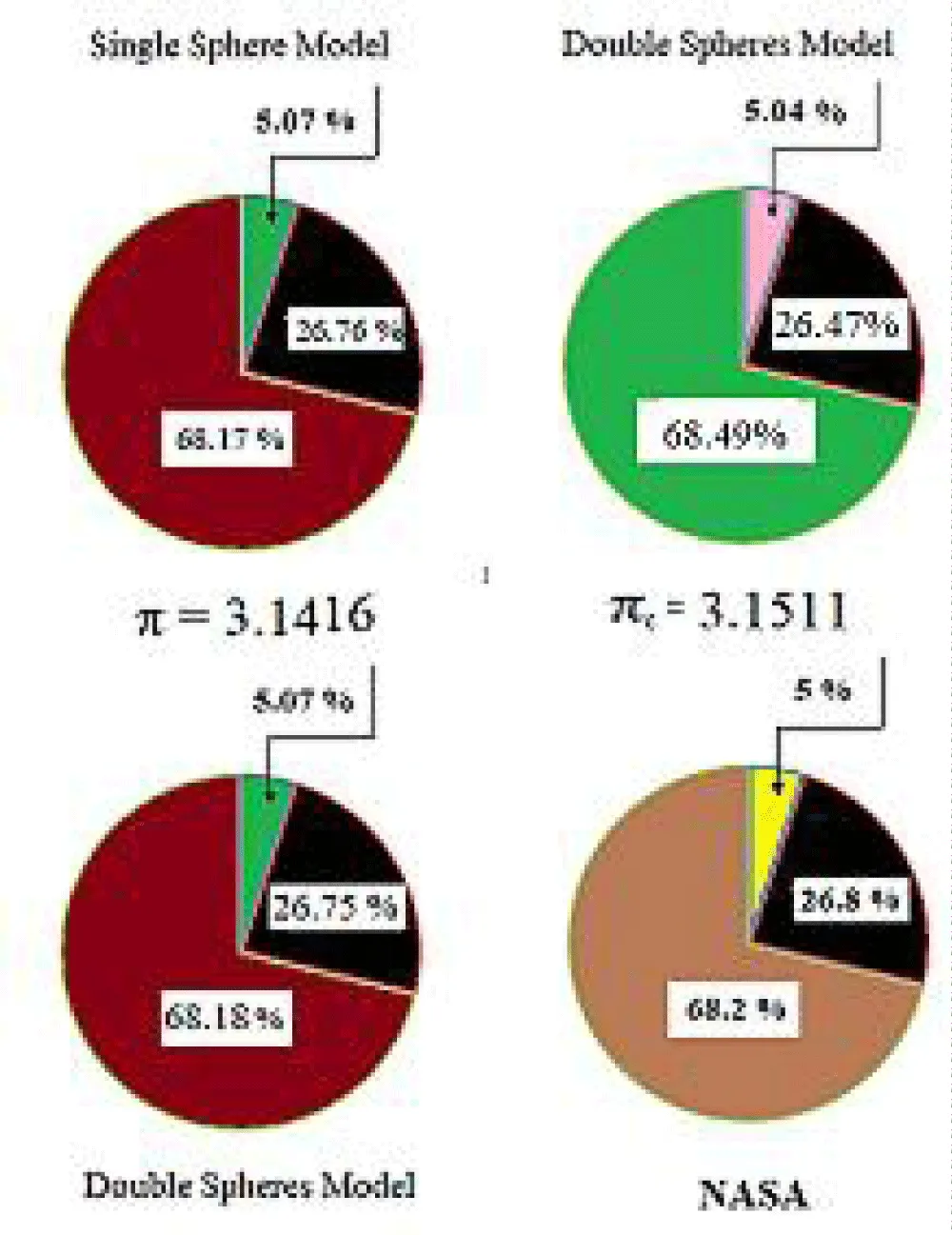 This means that the mass of what is called the Dark Energy may form the core of the Universe. Figure 2 shows a comparison between the present results and the recent results of NASA.