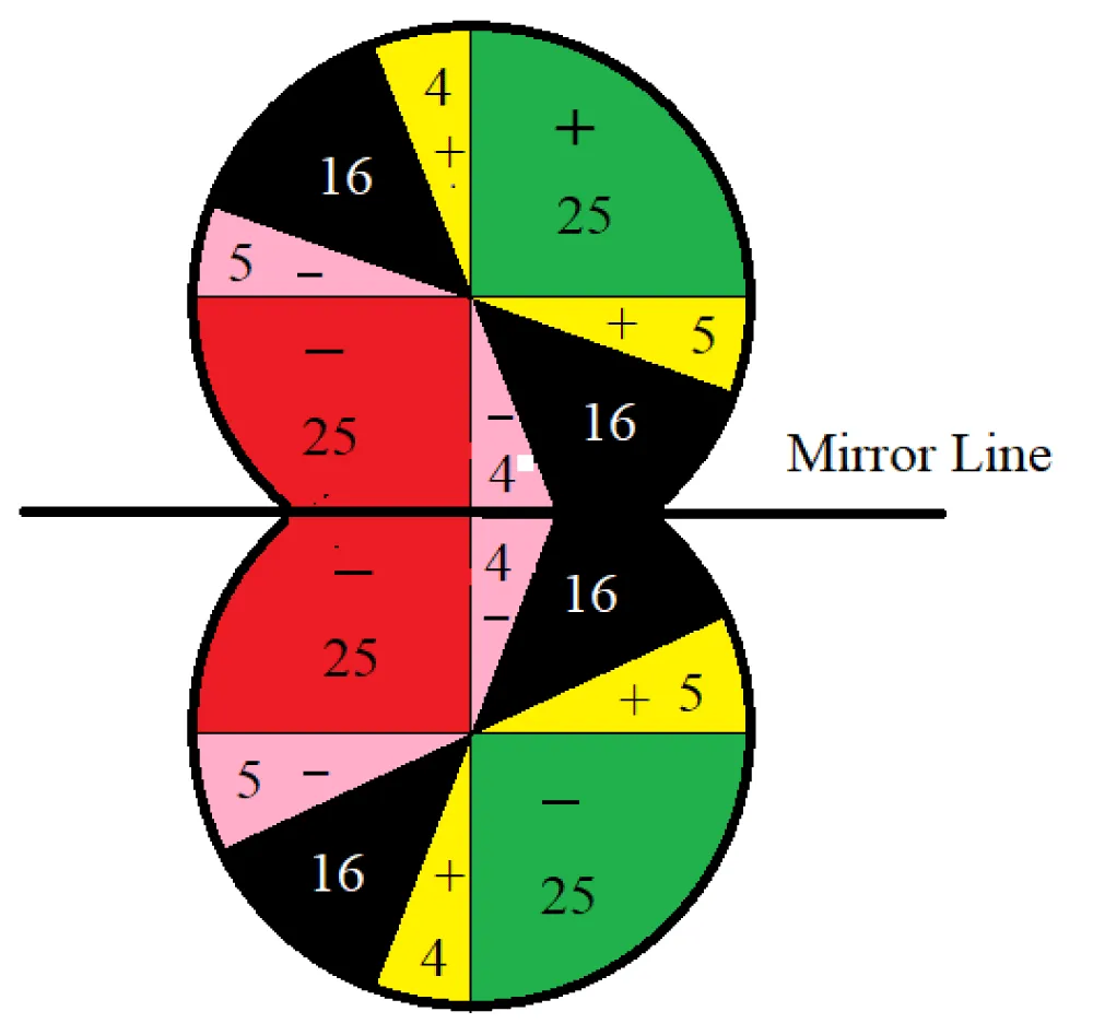 - Treating the total mass as 100 bodies, then from symmetry as seen in Figure (4), each half consists of (25, 9, and 16).